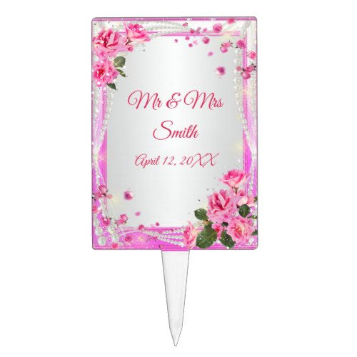 Exclusive Finds Pink Roses And Pearls Wedding Cake Topper
