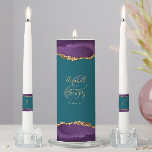 Shop Smart! Agate Purple Gold Script Teal Wedding Unity Candle Set