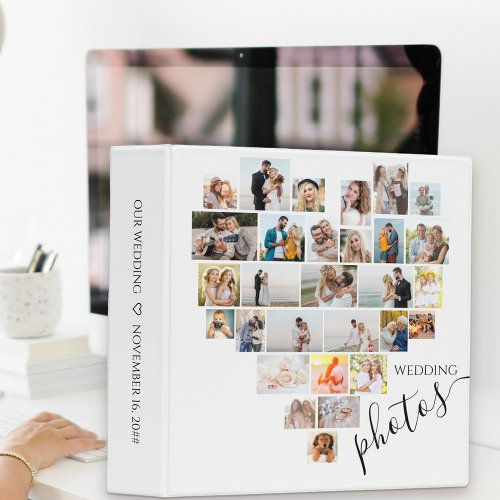 Wedding Pictures Heart Shaped Photo Collage White 3 Ring Binder ready to ship the fastest Wedding Pictures Heart Shaped Photo Collage White 3 Ring Binder order now with fast delivery service to your hand as soon as possibleUpload your wedding pictures and create your own Wedding Photo Album. The photo template is set up for you to add 29 of your favorite pictures which are displayed in a mix of square landscape and portrait formats to automatically form the heart shaped photo collage. The front cover is lettered with "wedding photos" in modern typography and elegant script. You can also add your own personalized spine title such as our wedding and your wedding date. This design is white with black typography. If you would like different colors click "customize further" - alternatively please browse my store.