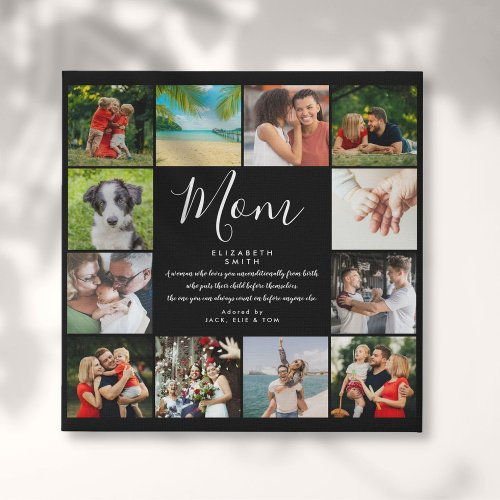 This item is trending! Mom Quote Black And White Script 12 Photo Collage Faux Canvas Print good product Mom Quote Black And White Script 12 Photo Collage Faux Canvas Print You can order itPersonalize with 12 favorite photos and quote for your Mom to create a unique gift for Mother's day birthdays Christmas baby showers or any day you want to show how much she means to you. Show her how amazing she is every day. Designed by Thisisnotme©.