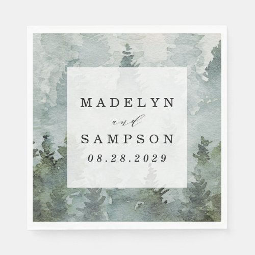 Pine Tree Forest Rustic Watercolor Themed Wedding Napkins ready to ship the fastest Pine Tree Forest Rustic Watercolor Themed Wedding Napkins quality products and have the highest number of reviews in the same categoryDesign features a woodsy evergreen pine tree watercolor background. Design also features a modern typography layout with elegant fonts. View the matching collection on this page to find coordinating items in this design.