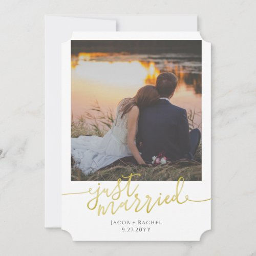 Weekly Deals Just Married Gold Script Overlay Photo Wedding Announ...
